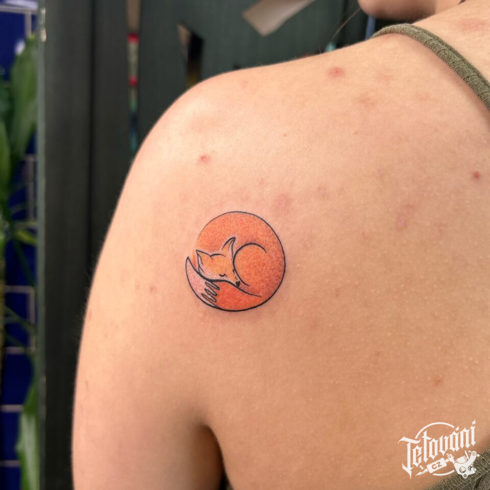 Minimalistické tetování liška na lopatku