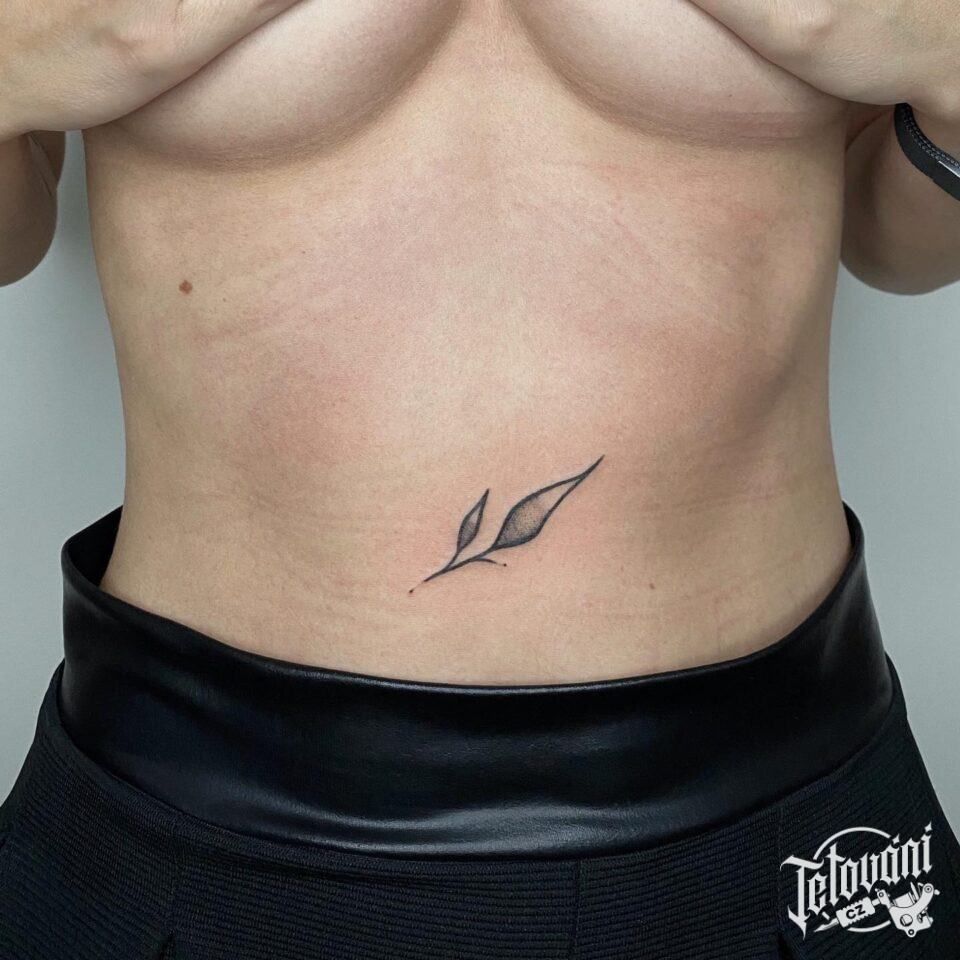 Minimalistické tetování lístek, znaky a symboly na břicho