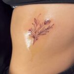 Minimalistické tetování luční kvítí na bok žeber