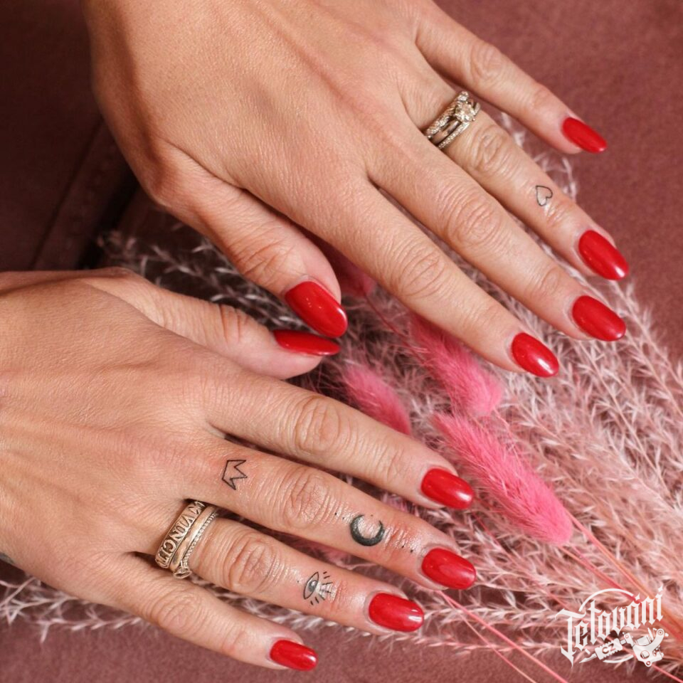 Minimalistické tetování měsíc, hvězda, symboly na prsty