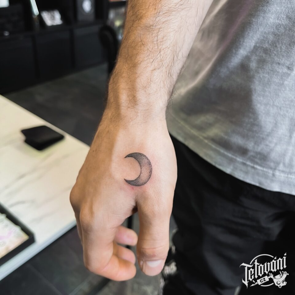 Minimalistické tetování měsíc na hřbet ruky