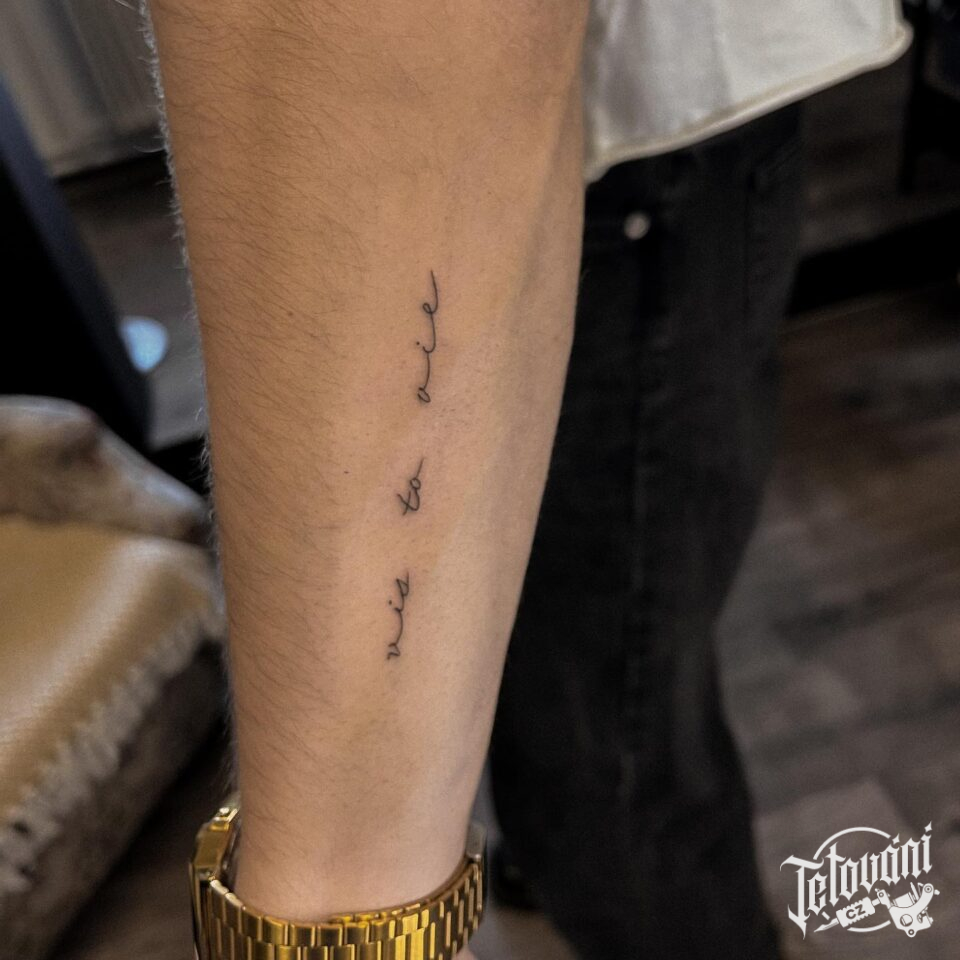 Minimalistické tetování nápis, citát, symbol na předloktí