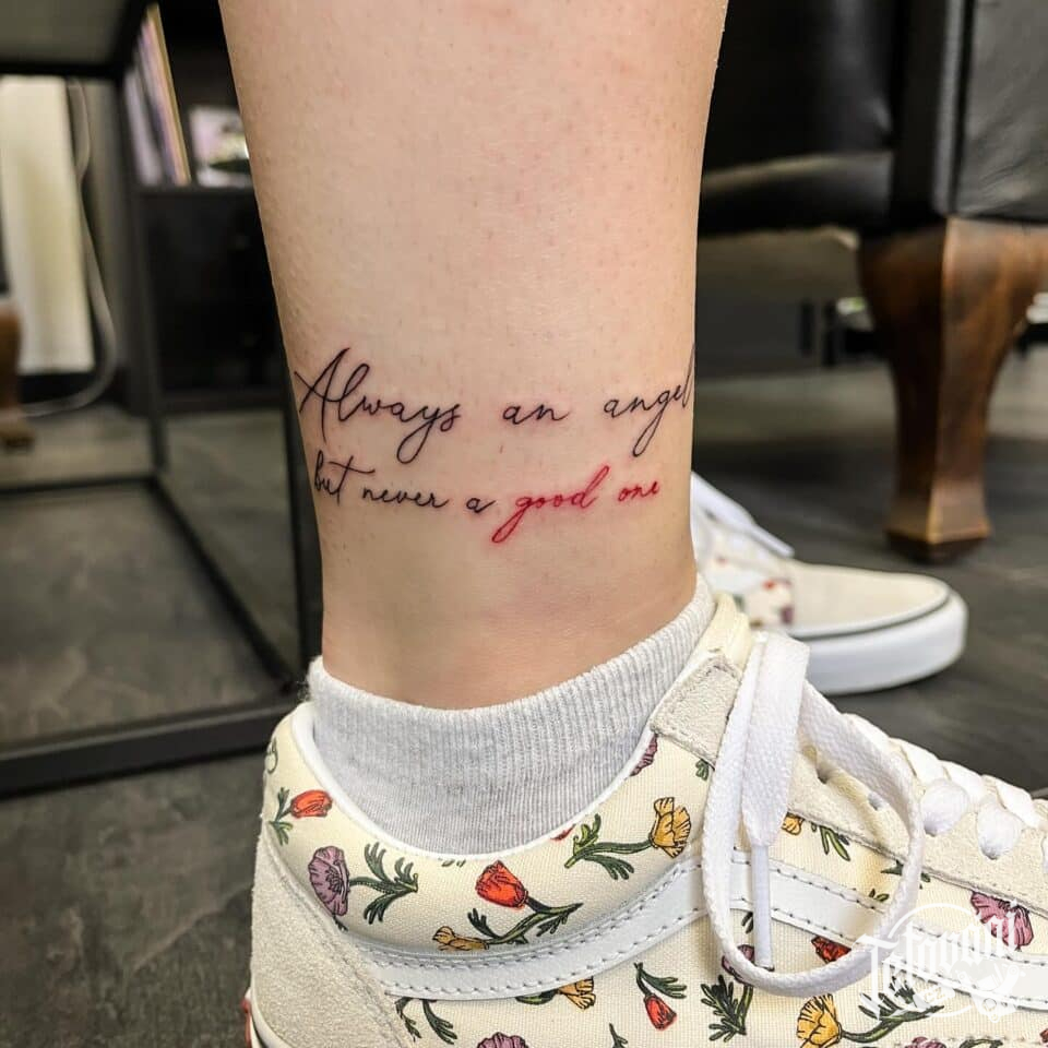 Minimalistické tetování nápisy, citáty na lýtko