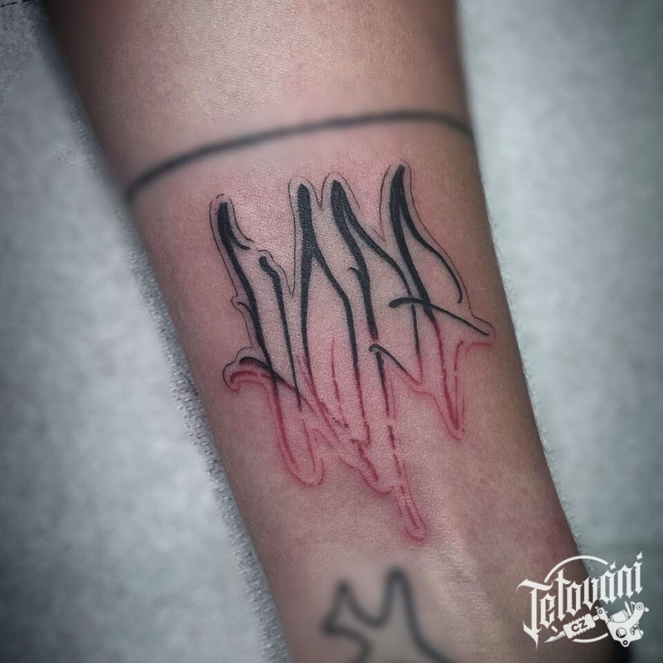 Minimalistické tetování nápisy, písmena na předloktí