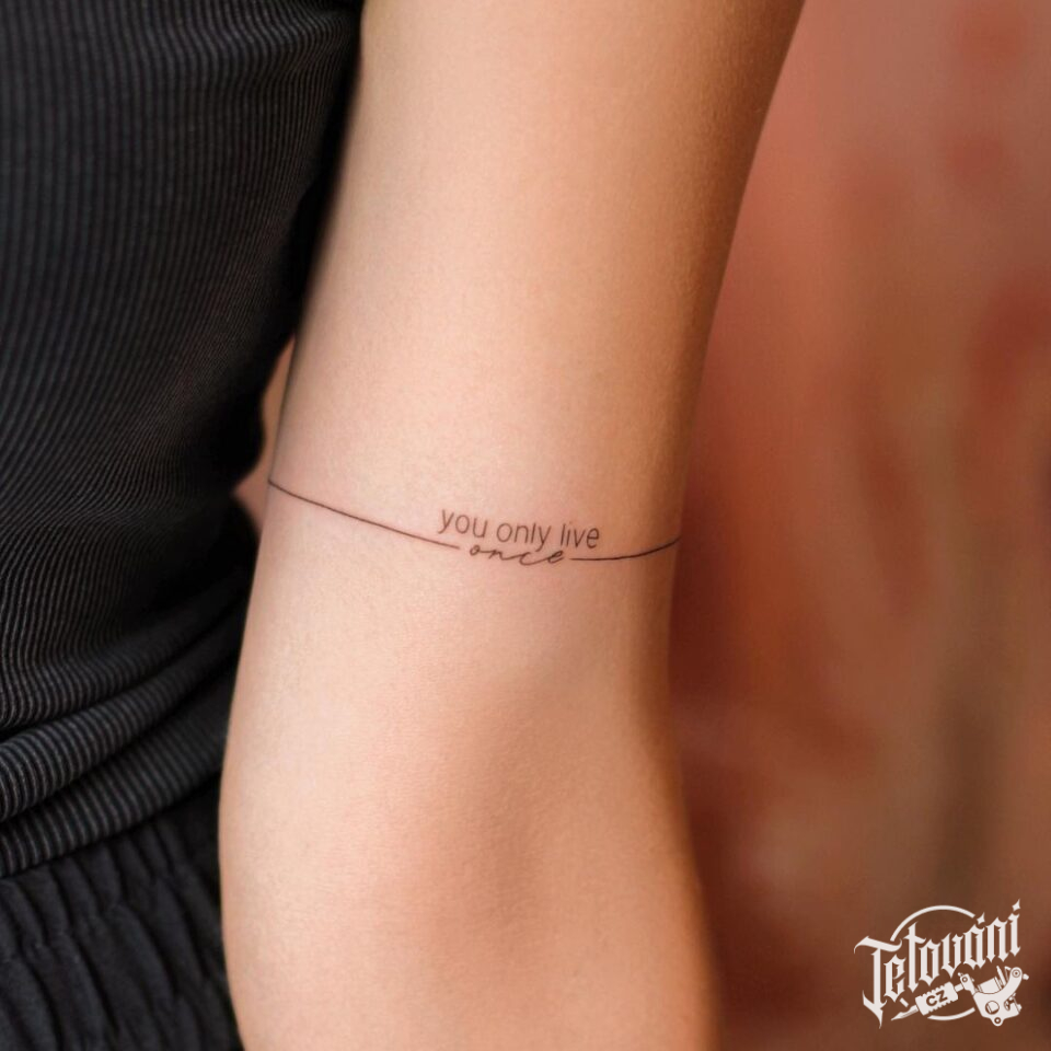 Minimalistické tetování náramek, nápis citát na zápěstí