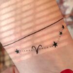 Minimalistické tetování, náramek, symboly, znamení zvěrokruhu, beran, hvězdy na předloktí