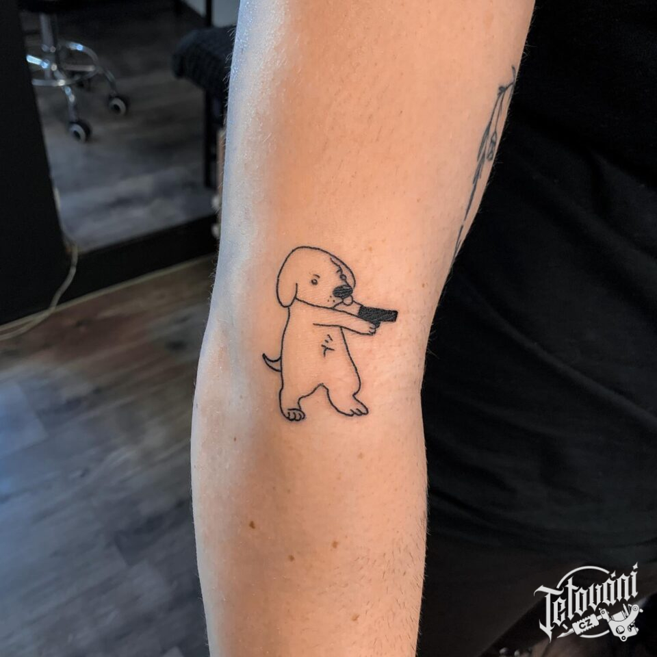 Minimalistické tetování postavička, znaky a symboly na předloktí