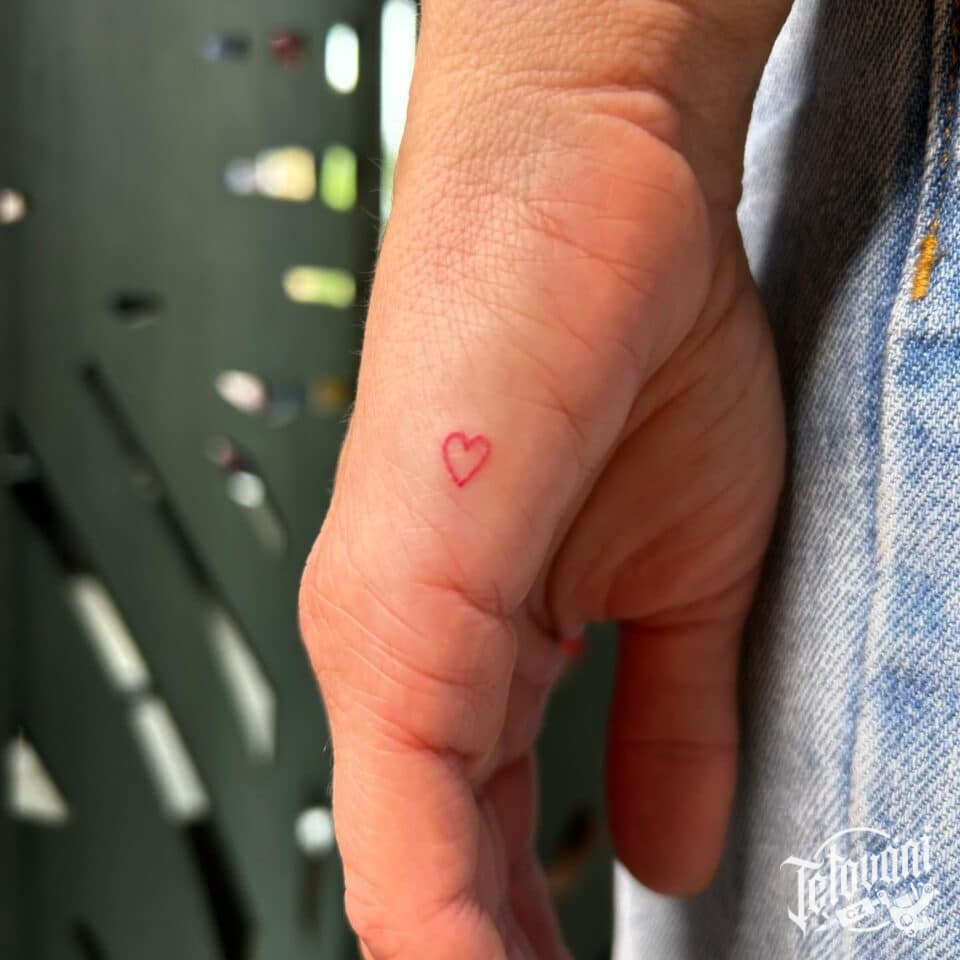 Minimalistické tetování srdce na dlaň