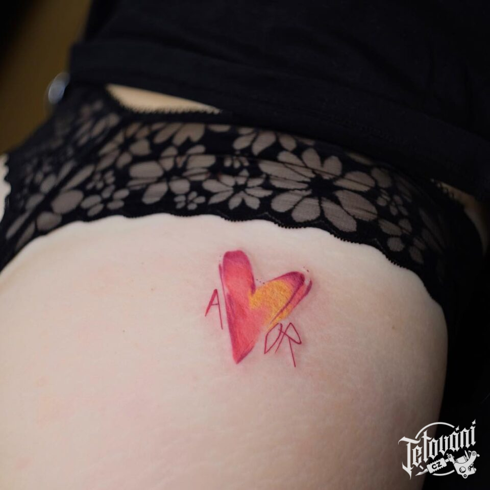 Minimalistické tetování srdce na zadek