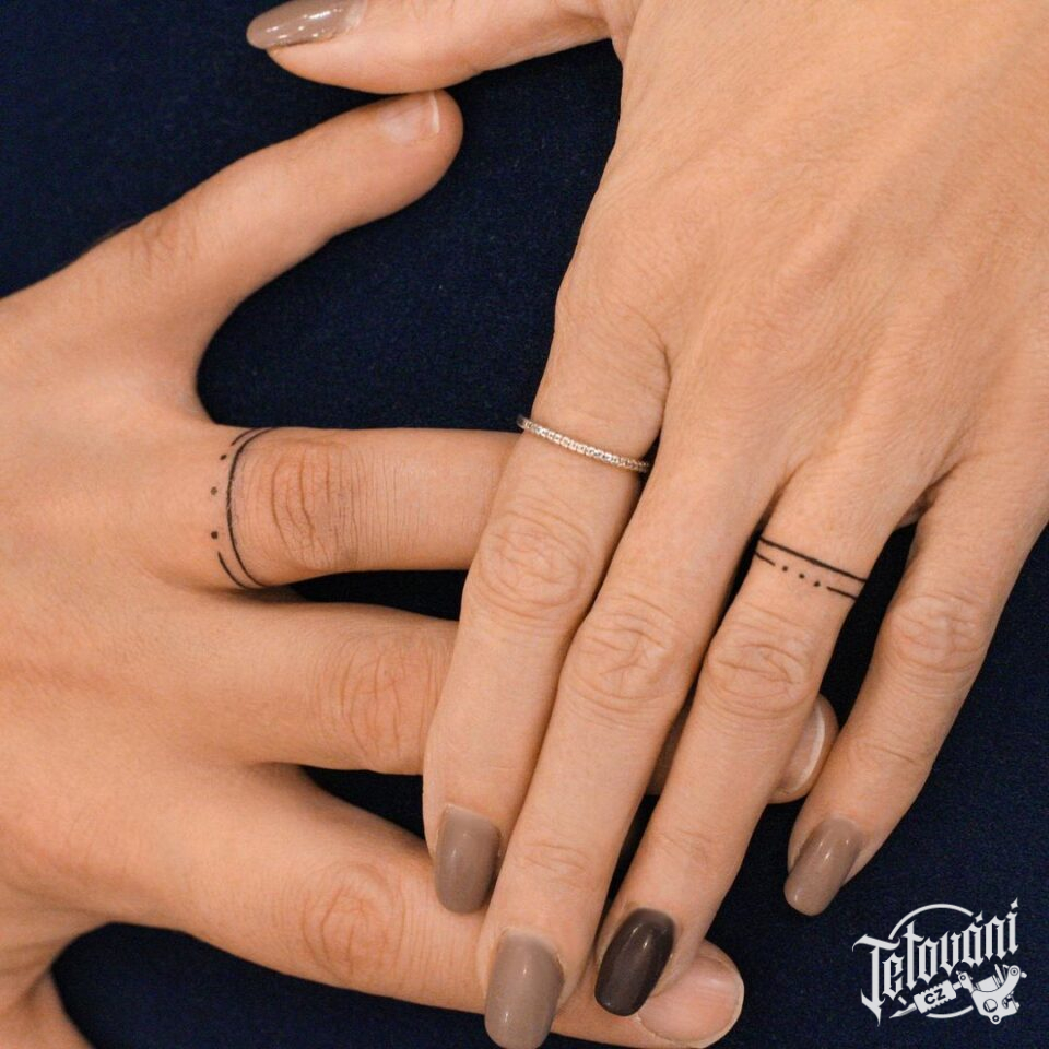 Minimalistické tetování symbol prsten na prsty