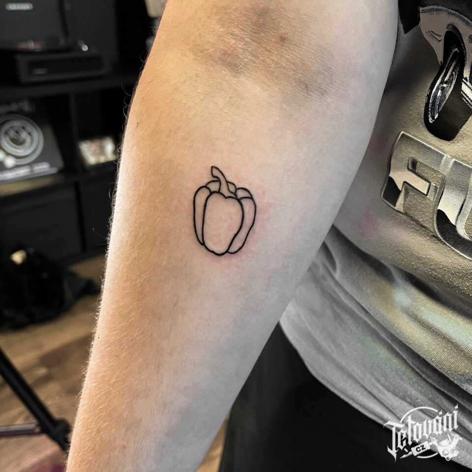 Minimalistické tetování symbol zdraví paprika na předloktí