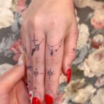 Minimalistické tetování symboly, květy, měsíc, hvězdy na prsty