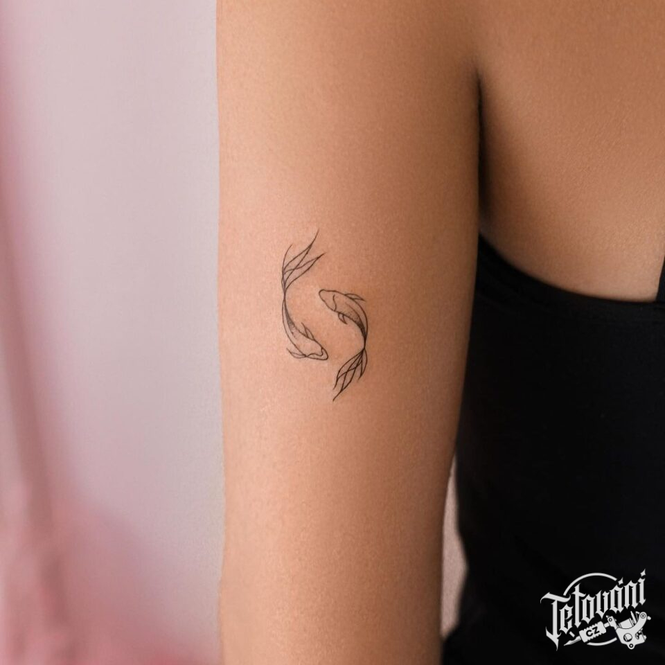 Minimalistické tetování symboly na ryby na paži