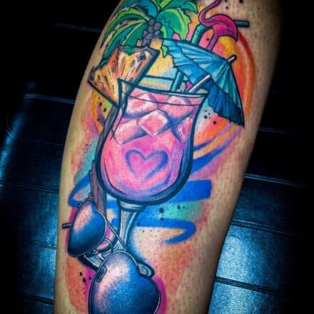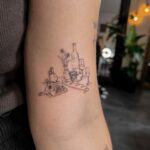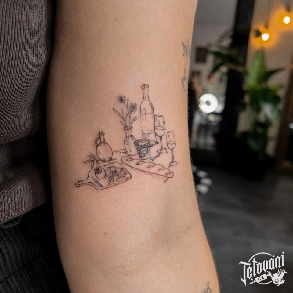 Minimalistické tetování víno, skleničky s vínem, symboly na paži