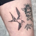 Minimalistické tetování vlaštovka na stehno