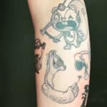 Minimalistické tetování z filmů a pohádek, postavičky anime na předloktí