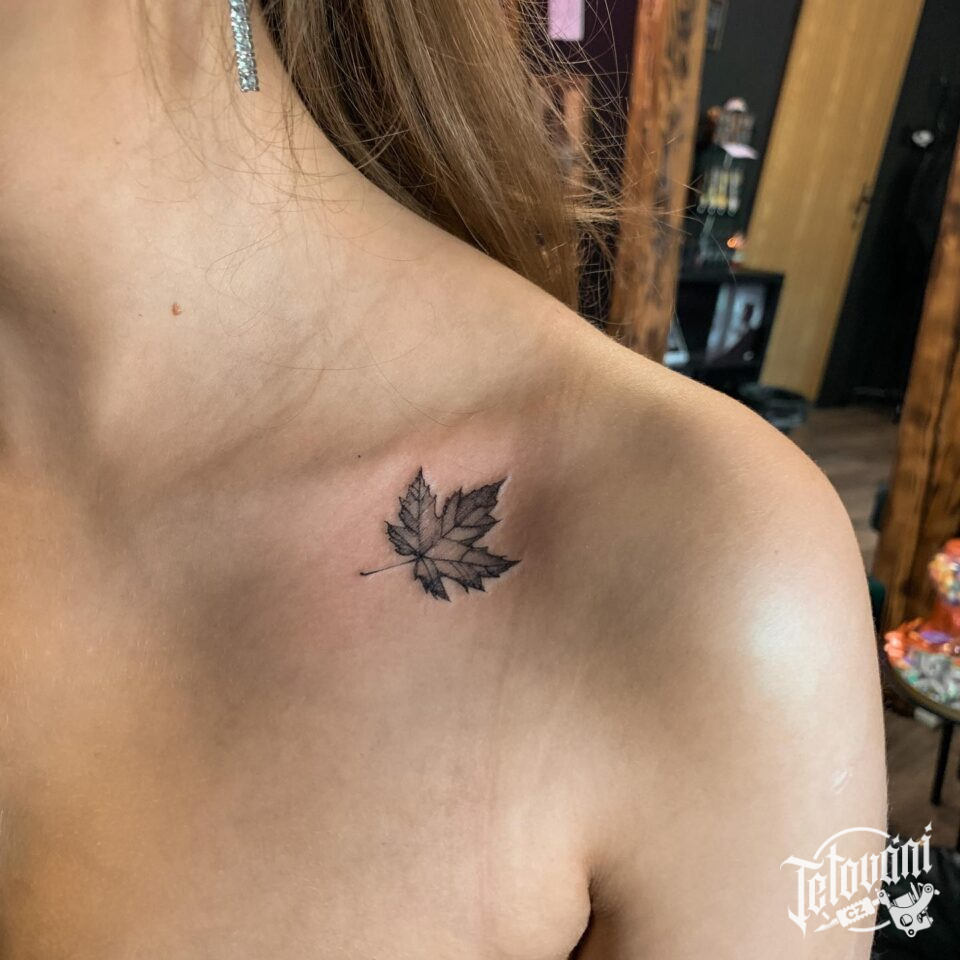 Minimalistické tetování znaky a symboly list pod klíční kost