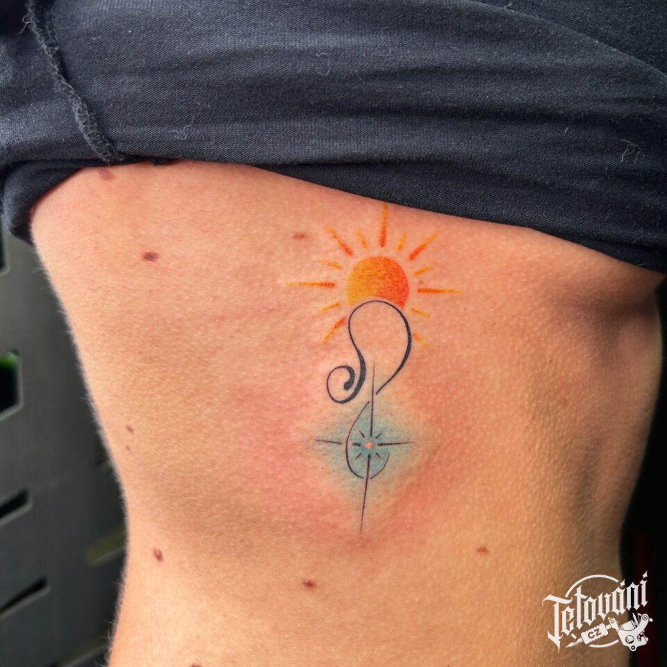 Minimalistické tetování znaky a symboly, slunce na žebra