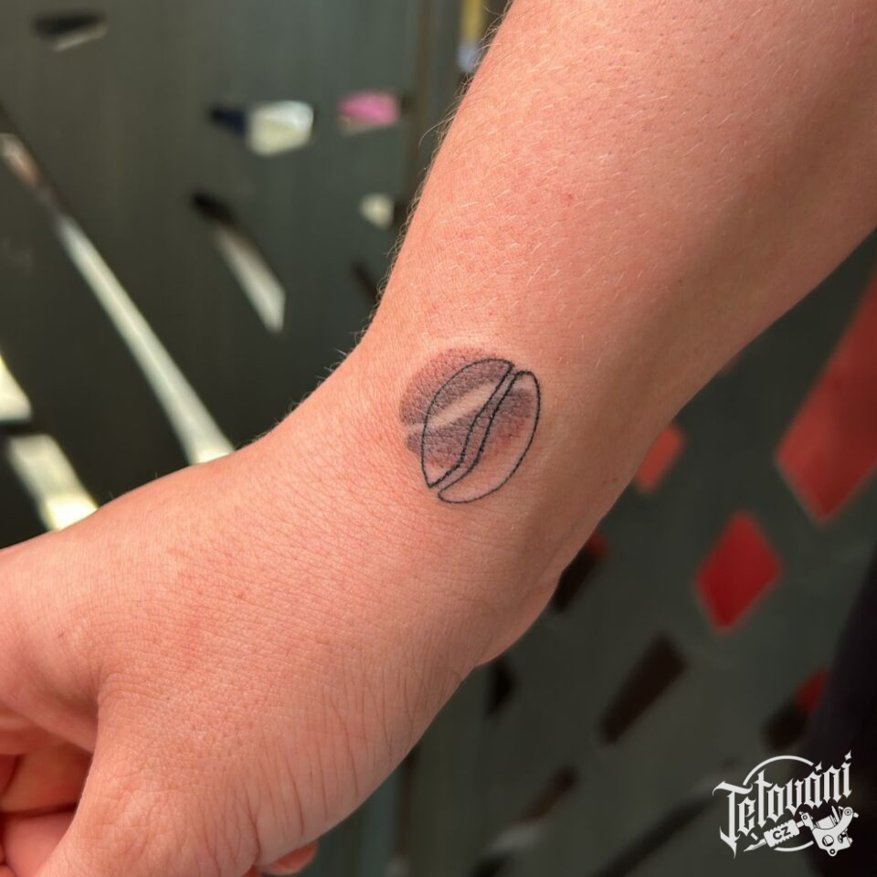 Minimalistické tetování znaky a symboly, zrnko kávy na předloktí