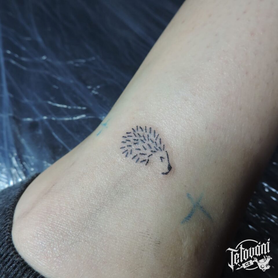 Minimalistické tetování zvíře ježek na kotník