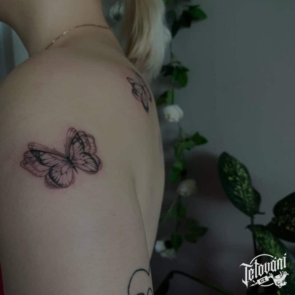 Minimalistické tetování zvíře motýl na rameno