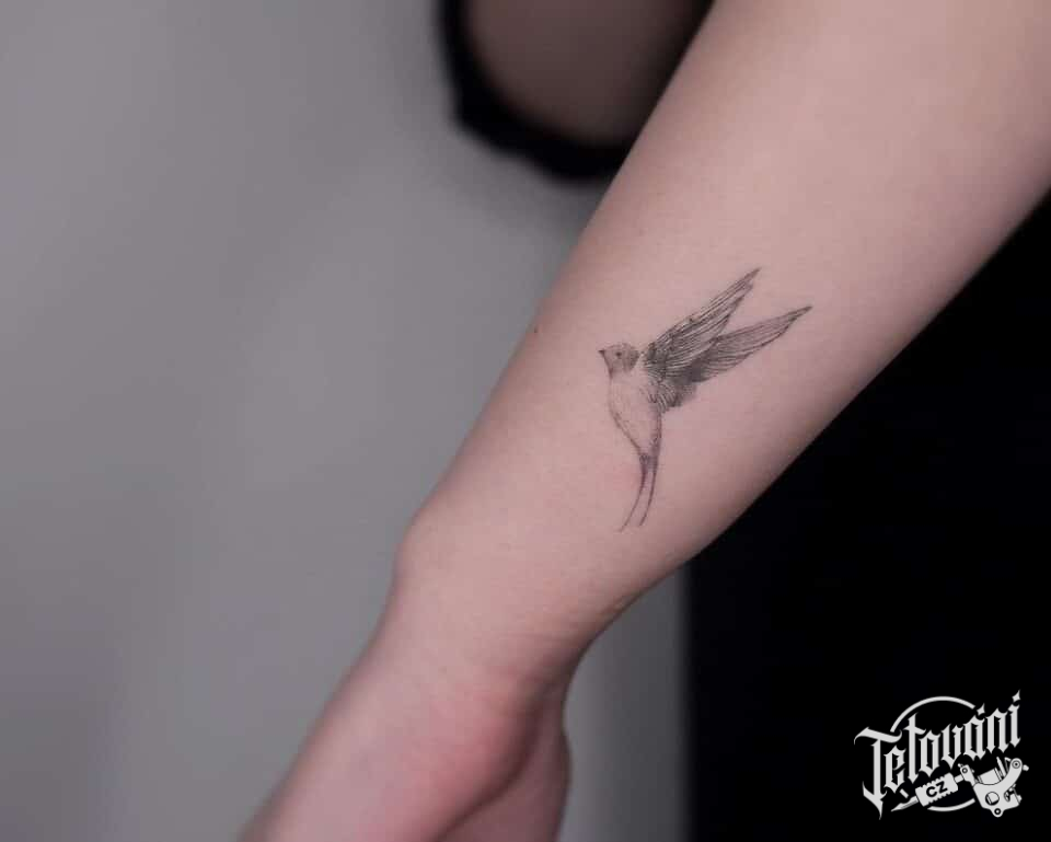 Minimalistické tetování zvíře vlaštovka na předloktí