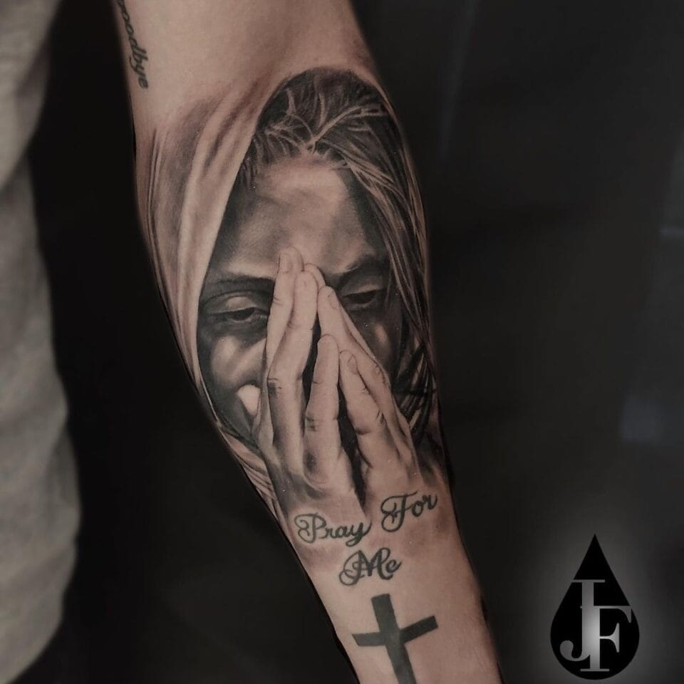 Náboženské tetování kříž se ženou