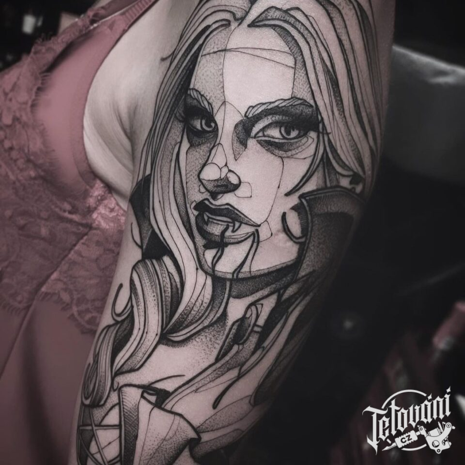 Portrét nadpřirozené bytosti, upírka na rameno