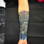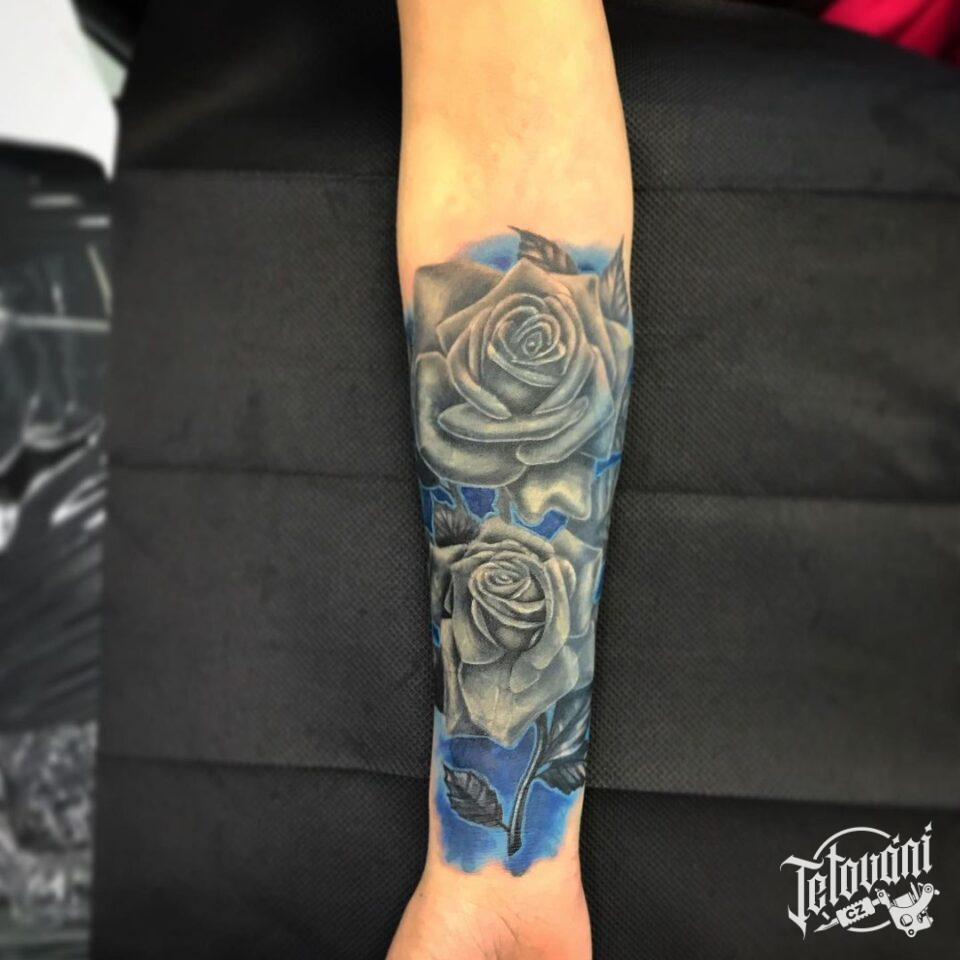 Realistické tetování květiny růže na předloktí