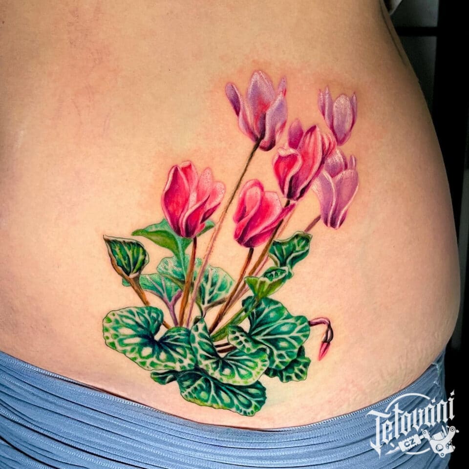 Realistické tetování květiny, znaky a symboly na bok
