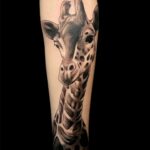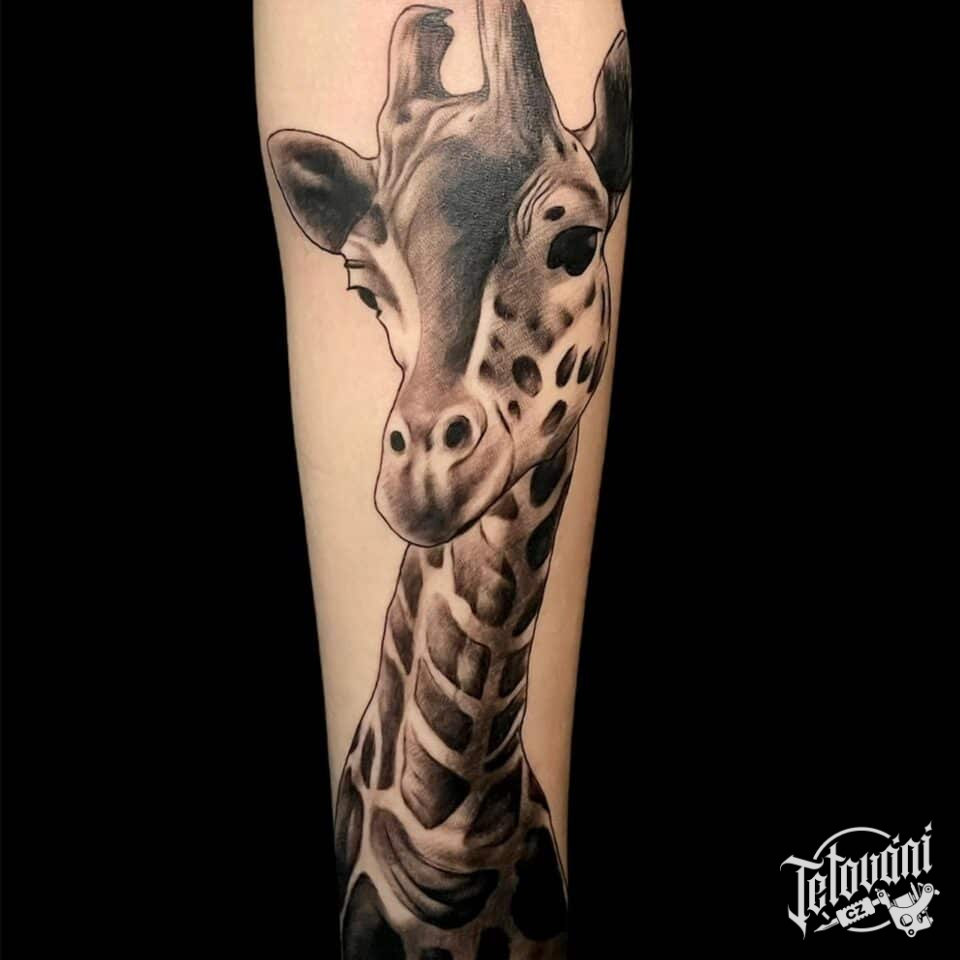 Realistické tetování portrét žirafy, zvíře na předloktí