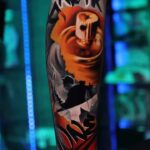 Realistika, tetování nápisy, písmena na lýtko