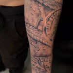 Tetování mytologie, severská mytologie, zvířata, pták a magické symboly ochrany na rukáv