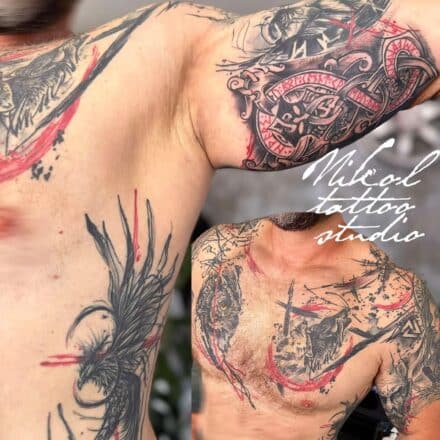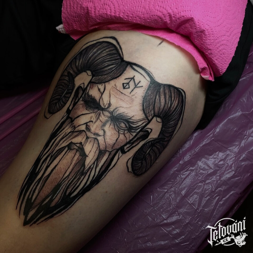Severské tetování, mytologie, mýtická bytost, bůh Mimir na lýtku