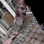 Severské tetování, Valkýra, havran, symbol Valknut a vlk, rukáv