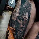 Severské tetování valkýra, portrét na stehně