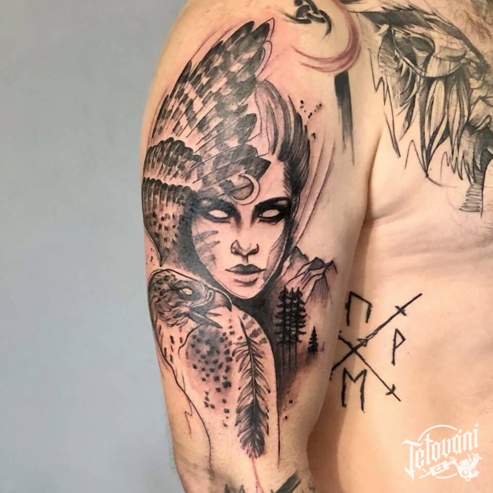 Severské tetování, žena s orlem na rameno