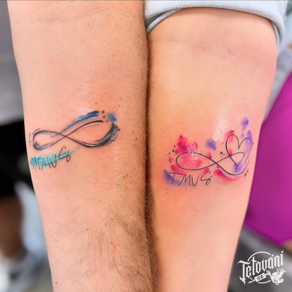 Společná tetování nekonečno ležatá osmička, láska na předloktí
