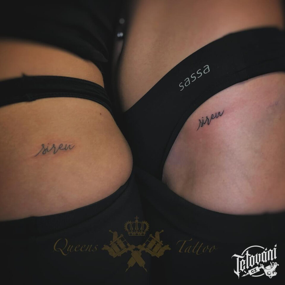 Společná tetování pro kamarádky, nápisy na bok stehna