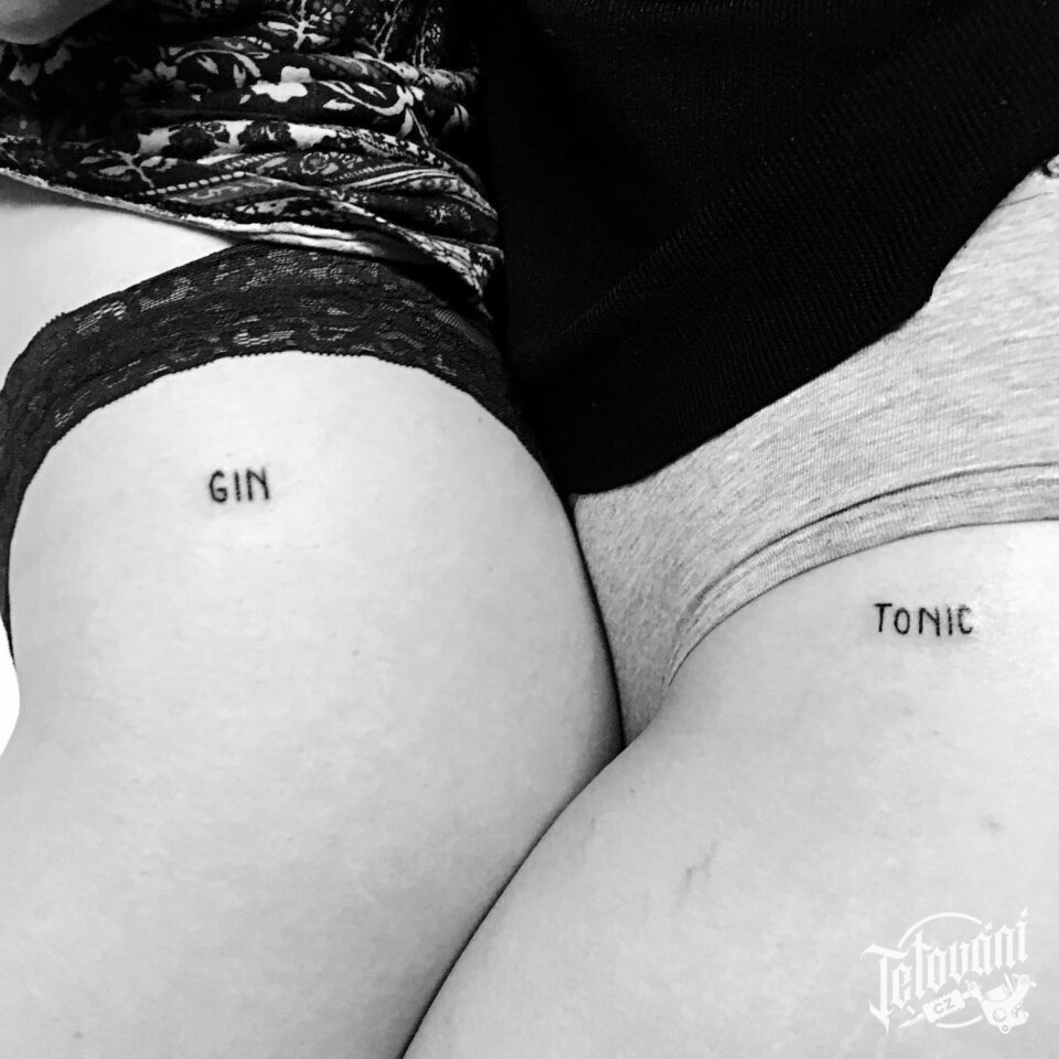 Společná tetování pro kamarádky, nápisy na boku stehna