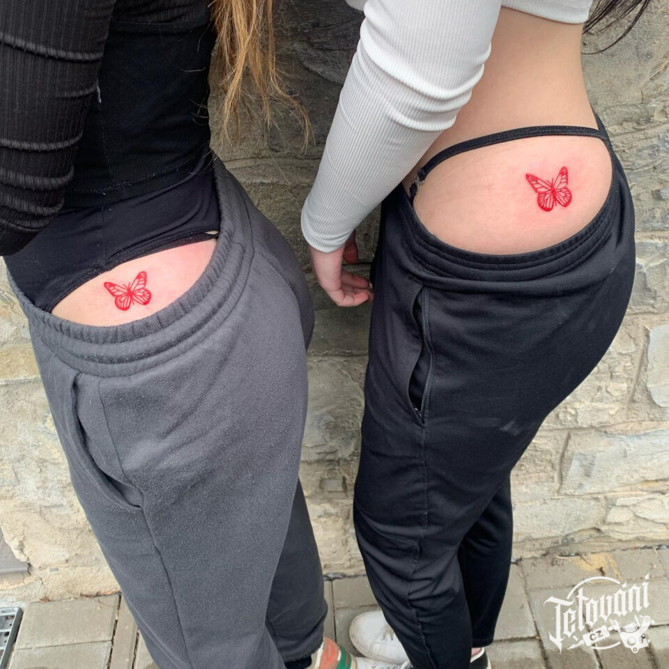 Společná tetování pro kamarádky, pro sestry, zvířata, motýli na boku
