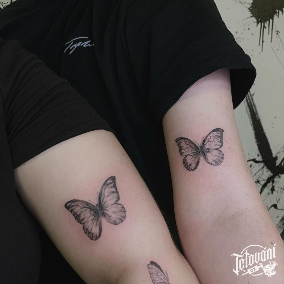Společná tetování pro kamarádky, sestry zvířata motýl na paži
