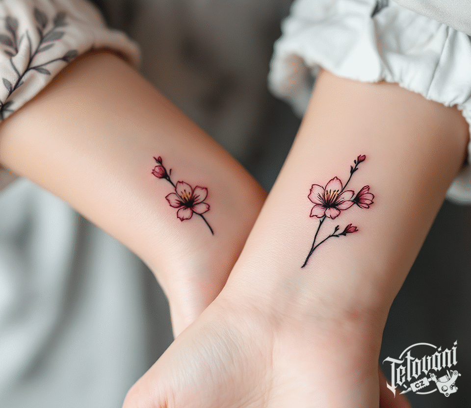 Společná tetování pro kamarádky, třešňový květ na předloktí