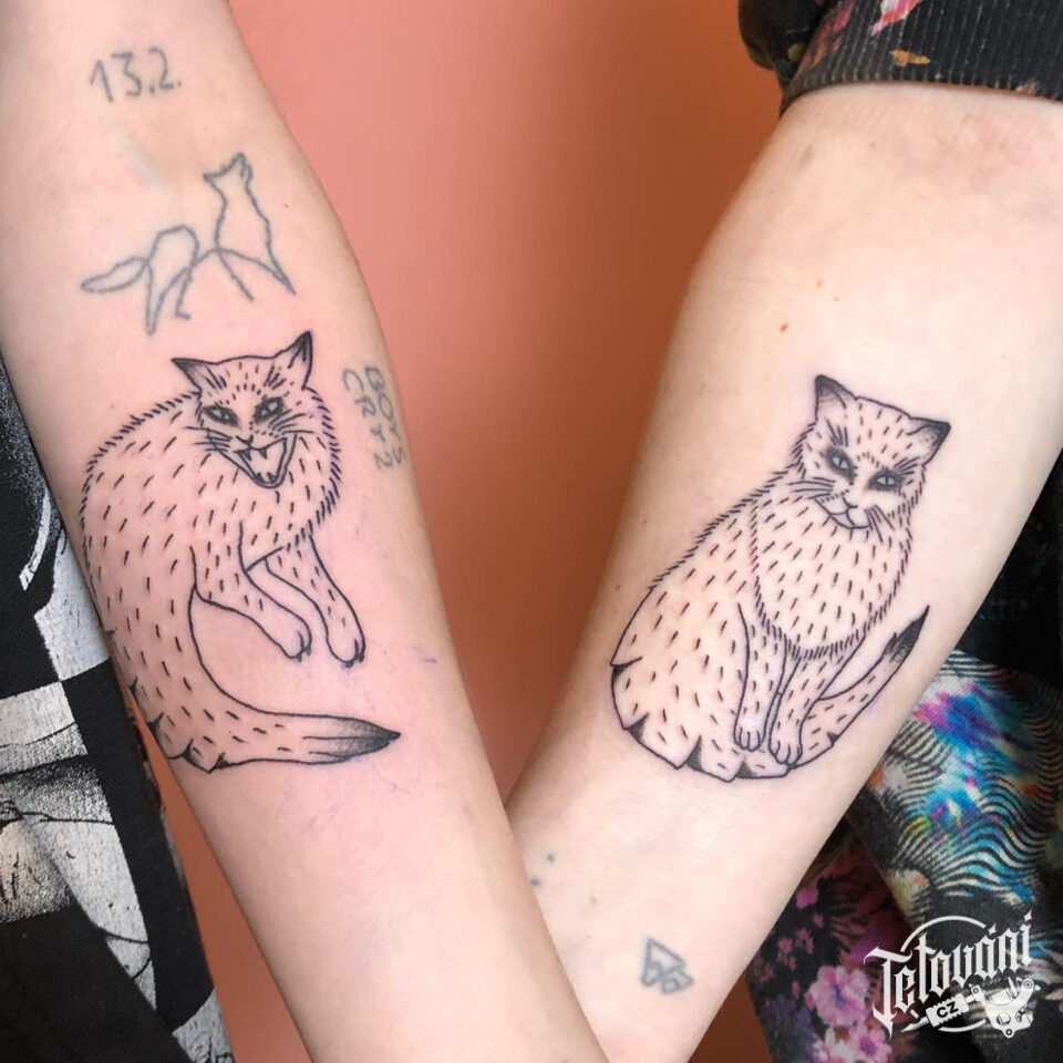 Společná tetování pro kamarádky, zvířata, kočky na předloktí