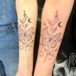 Společná tetování pro kamarádky, zvířata, motýl a květiny, luční kvítí na předloktí