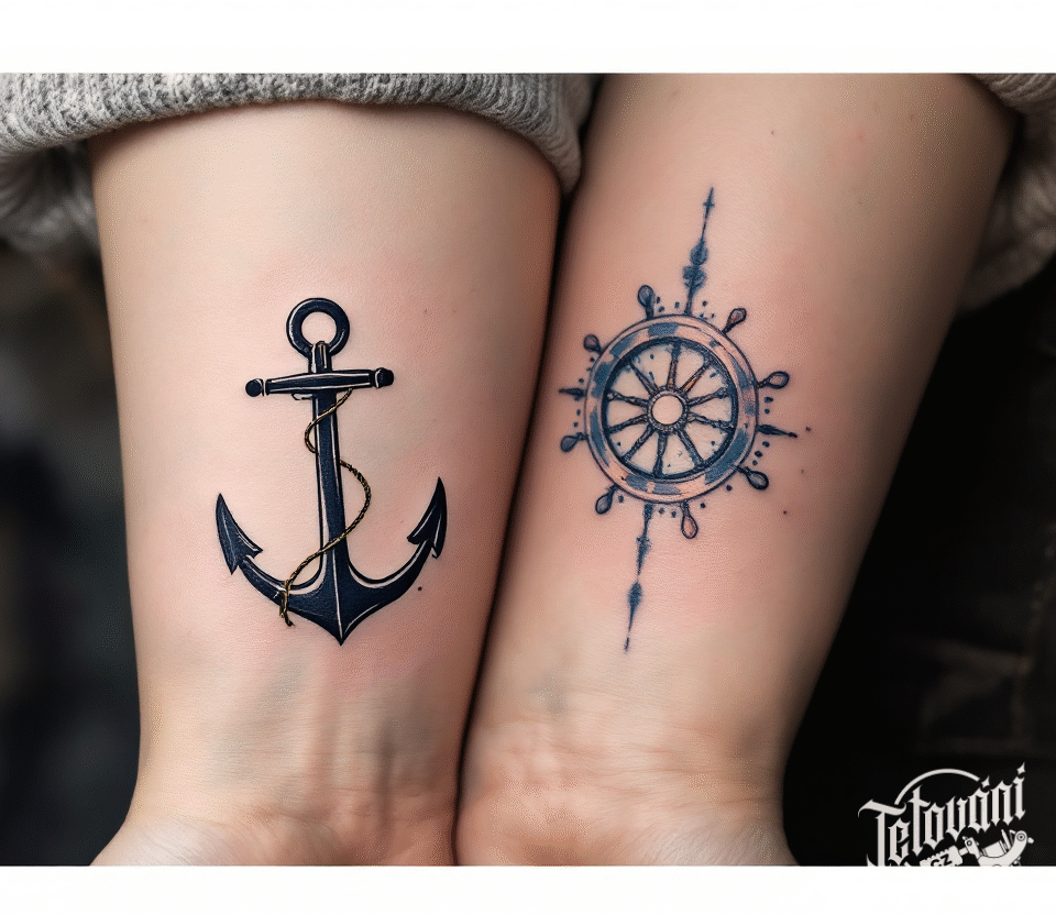 Společná tetování pro manžele, námořníci, kotva a kormidlo na předloktí