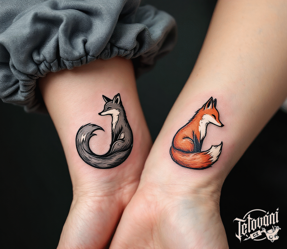 Společná tetování pro manžele, zvířata, lišky na zápěstí