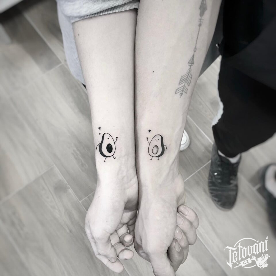 Společná tetování pro páry, avokádo, symbol lásky na předloktí