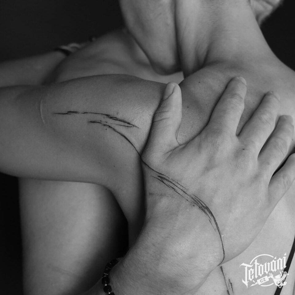 Společná tetování pro páry, čáry na hřbetu ruky a rameni