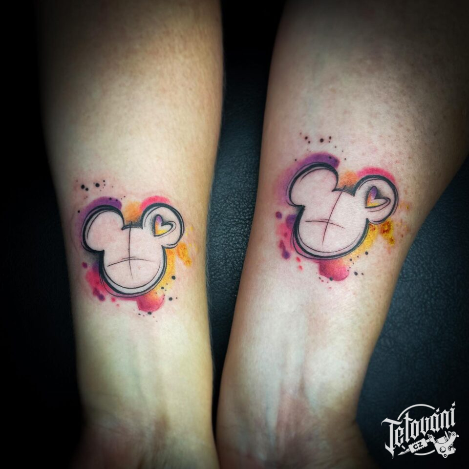 Společná tetování pro páry, kamarádky, symbol Mickey Mouse z filmů a pohádek na předloktí
